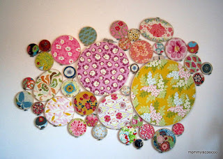"I bought a lot of hoops for $35. Then I used fabric remnants to cover a large space on one wall. The wall is painted pale pink so the beautiful fabrics really stand out. This project was very inexpensive and looks stunning. Better yet, anyone can do it. All you need to do is trace and cut a circle for each hoop." -Amanda of Mommy is Coocoo